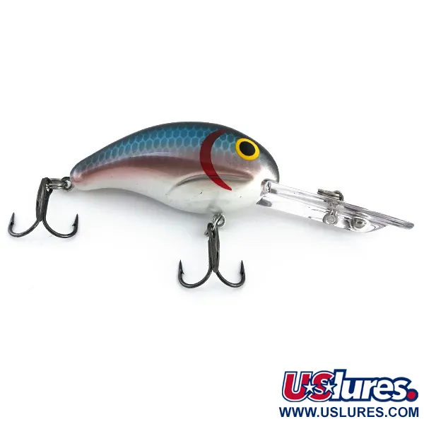 Ett Threadfin Shad-färgschema definierar utseendet på denna Bandit 300, med ett realistiskt fjällmönster på ovansidan och ett framträdande rött gälstreck nära ögat. Med en längd på 5 cm (2") är denna djupgående wobbler konstruerad för att nå djup mellan 2,4 och 3,6 m (8-12 ft), vilket gör den till ett pålitligt val för gös- och gäddentusiaster. Draghårdvaran är i toppskick och kroppen är i utmärkt 5/5-skick, vilket visar den kvalitet man förväntar sig av ett USA-tillverkat bete med produktkod 8869. En invändig rasselkula ger ifrån sig ljud under hemtagning, medan den stora, klara hakskeden underlättar det nödvändiga dykdjupet för kastfiske eller trolling på djupt vatten. Det gulringade ögat fungerar som en fokuspunkt med hög kontrast mot den mörka, skimrande blå ryggen och silvermagen, och betet väger exakt 10 g (1/3 oz).
