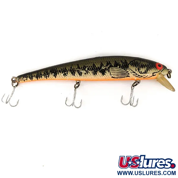 I XBBO-färgsättningen har denna 12 cm (4 3/4") minnow-vobbler ett tydligt abborrmönster på sidorna och en mörk, kontrasterande rygg. Konstruktionen inkluderar tre vassa trekrokar längs buken för att säkerställa bra krokning vid fiske efter gädda eller gös. Designad som ett svävande (suspending) bete arbetar den på djup mellan 0,6–0,9 m (2ft–3ft) vid kast och når ner till 1,2–2,4 m (4ft–8ft) vid trolling. Bomber, med ursprung från USA, har byggt denna modell med en intern rasselkammare som ger en stadig ljudsignal. Intensiva röda ögon ger en slående blickpunkt mot de naturtrogna fjällen och detaljerade fenorna. Detta exemplar, med produktkod 11212, är i 5/5 skick med en klar sked och livfull finish. Med en vikt på 12 g (2/5 oz) tillåter kroppen en kontrollerad presentation under en mängd olika vattenförhållanden.