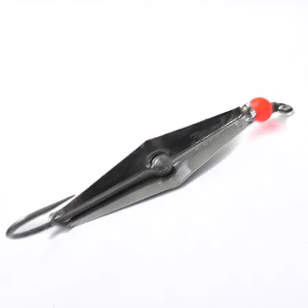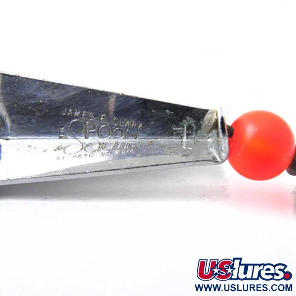Med en vikt på 1/4 oz (8g) uppvisar denna amerikansktillverkade klassiker från James E. Clark en speciell vasskyddad konstruktion avsedd för fiske i tät vegetation. Skeddraget mäter 6,5 cm (2 1/2") och har en skarp diamantformad profil stansad i reflekterande förnicklad metall. En distinkt röd pärla vid linfästet ger en subtil fokalpunkt mot den blanka silverfinishen. Denna Clark Spoon, märkt med produktkod 0467, har enkelkroken integrerad direkt i kroppens bakkant för att minimera risken för bottennapp. Exemplaret är i skick 4/5 och har kvar sin ursprungliga lyster och rena metallytor. Designen har sitt ursprung i USA och speglar den okomplicerade och effektiva tillverkning som har gjort dessa skeddrag till en stapelvara i kustfiskarnas draglådor i decennier.