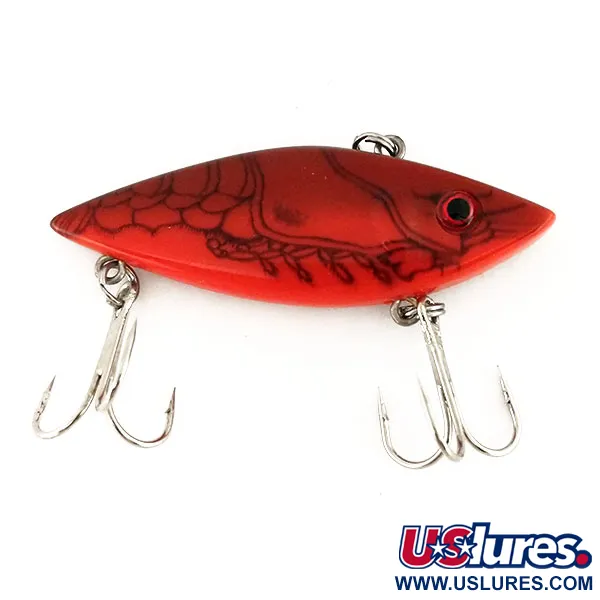 Detta sjunkande lipless-drag väger 9 g (1/3 oz) och är utformat för effektiv presentation på varierande djup beroende på invevning. Cotton Cordell producerade Bait Bonanza, med produktkod 9585, som ett mångsidigt verktyg för både spinnfiske och trolling. Kroppen på 6 cm (2 1/4") har en dristig röd finish dekorerad med ett detaljerat svart kräftmönster, med intrikata linjer som efterliknar anatomin hos ett kräftdjurs skal och ben. Detta USA-tillverkade exemplar är i skick 5/5, där både färg och hårdvara är i utmärkt tillstånd. Målarter för denna profil inkluderar abborre, gös, öring och lax. Infästningspunkten är placerad på ryggen, en klassisk konfiguration för lipless-design avsedd att bibehålla en stabil gång vid olika invevningshastigheter.