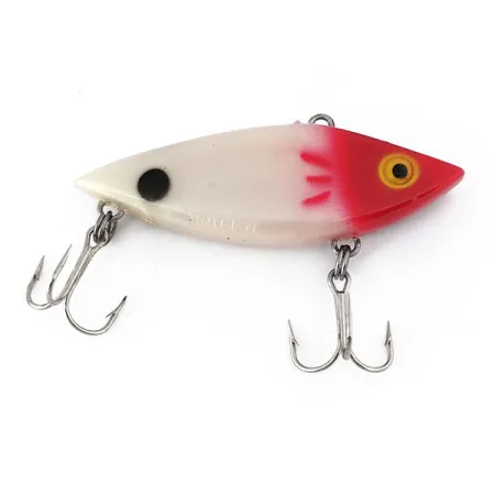 Rött huvud och vit kropp definierar denna klassiska lipless crankbait, en design som Cotton Cordell perfektionerade för att täcka olika djup i vattenpelaren. Just denna Hot Spot, identifierad med produktkod 10529, har det ikoniska gula ögat och en tydlig svart fläck nära stjärtpartiet som gett modellen dess namn. Tillverkat i USA, väger draget mångsidiga 1/3 oz (9 g) och mäter 2 1/4" (6 cm), vilket gör det till ett standardval för spinnfiske eller trolling efter abborre, gädda eller öring. Konstruktionen inkluderar en intern rasselkammare designad för akustisk attraktion medan betet sjunker. Skicket är graderat till 5/5, med en ren finish och vassa originalkrokar. Eftersom det är en sjunkande modell fiskar den på valfritt djup, vilket ger sportfiskaren kontroll över hela huggzonen.