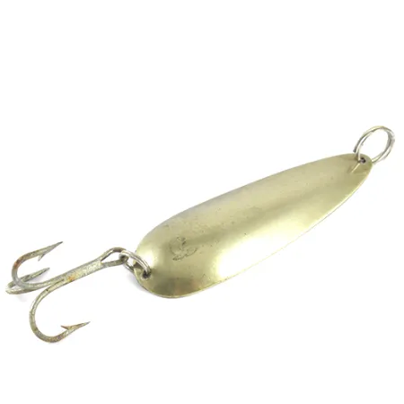 Den djupt präglade "DETROIT U.S.A."-stämpeln i den konkava mässingsytan bekräftar att detta exemplar på 1 oz (28 g) härstammar från tiden före Eppingers flytt till Dearborn 1959. Med en längd på 3 1/2" (9 cm) bär skeddraget det ikoniska varumärket på insidan, vilket speglar det arv Lou Eppinger etablerade i Michigan. Mässingsytan visar en mjuk, jämn åldring som samlare uppskattar, vilket ger den ett stabilt skickbetyg på 4/5. Model 1627 använder den traditionella avlånga profilen designad för spinnfiske eller trolling på olika djup. Metallkroppen är tillräckligt tung för djupt fiske och är utrustad med en vintage trekrok säkrad med en fjäderring. En enkel metallring i fören ger en pålitlig lininfästning. Den historiska "Detroit"-märkningen knyter specifikt detta bete till produktionsserierna från tidigt till mitten av 1900-talet. Dess robusta konstruktion är fortfarande en måttstock för den kvalitet som en gång fick den amerikanska regeringen att inkludera dessa skeddrag i överlevnadskit.