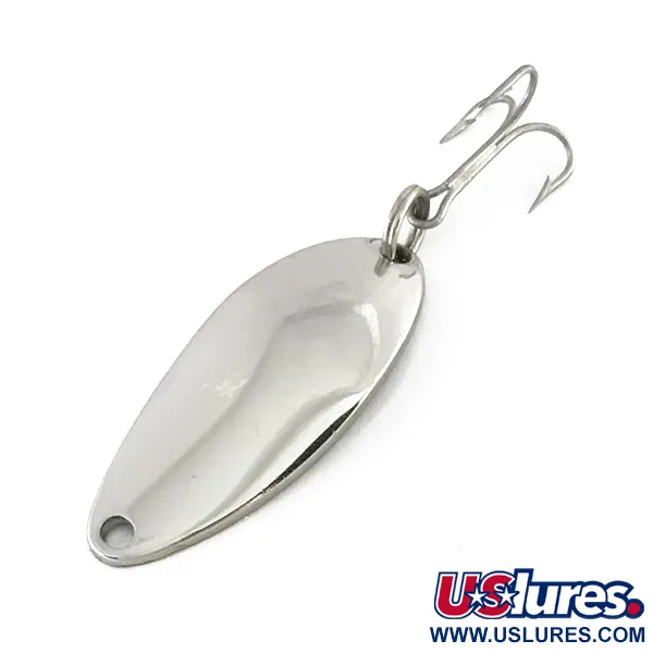 Tydligt präglat i den polerade metallen finns märkningen "DEVLE-DOG 5200 DETROIT U.S.A.", vilket identifierar detta klassiska stycke amerikansk sportfiskehistoria från Eppinger. Detta 4 cm (1 1/2") skeddrag har en högblank nickelfinish som erfarna sportfiskare ofta väljer för maximal reflektion vid fiske i klara vatten. Med en vikt på 7 g (1/4 oz) erbjuder modell 8150 en mångsidig profil som kastar väl med lätt till medeltung utrustning. Formen bygger på de egna pressverktyg som Eppinger använt sedan märkets tidiga dagar i Detroit, vilket säkerställer den specifika geometri som fyllt fiskelådor i generationer. Det levereras utrustat med en vass trekrok och en stark fjäderring. Detta exemplar är i utmärkt skick, betygsatt 5/5, med en spegelblank yta och välbevarade detaljer. Vid fiske med ett skeddrag som detta är jämn invevning standard, även om många fiskare lyckas genom att försiktigt knycka med spötoppen så att betet fladdrar under pausen.