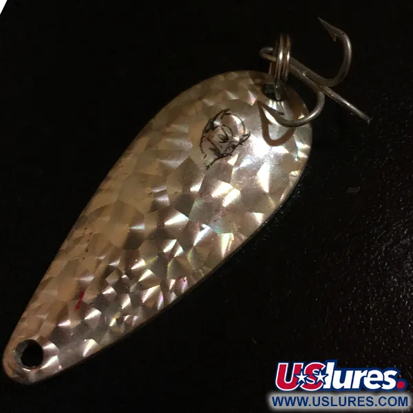 En facetterad 'Crystal'-finish definierar detta vintage Eppinger skeddrag, ett mönster som slutade tillverkas på 1980-talet. Med en vikt på 1/3 oz (9 g) är denna Dardevle Spinnie Crystal (produktkod 4408) ett klassiskt exempel på amerikanskt beteshantverk från Dearborn, Michigan. Den 4,5 cm (1 3/4") långa droppformade kroppen är stämplad med den ikoniska djävulshuvudslogotypen, ett äkthetsmärke som samlare letar efter på dessa USA-tillverkade modeller. Den reflekterande ytan är utformad för att maximera ljusblixtar med hjälp av de proprietära stansar som Eppinger är kända för. För ett bete av denna ålder förblir hårdvaran robust, med en kraftig fjäderring och en vass trekrok som lämpar sig för spinnfiske eller trolling. Detta exemplar är i 5/5 skick och bibehåller en ren och strålande lyster över den texturerade ytan. Historiskt sett konstruerades dessa mindre Spinnie-modeller för mångsidighet och fungerade ofta som ett givet val för öring eller abborre när en mindre profil krävdes. Skeddragets konkava insida är polerad till hög glans, vilket kontrasterar mot den flervinklade utsidan som fångar ljus från alla håll.