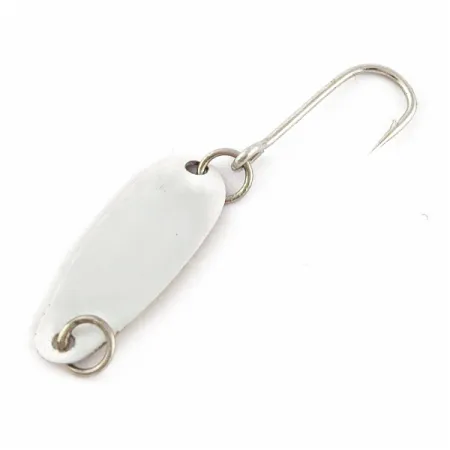 En glänsande pärlemorfinish täcker den tunna metallkroppen på detta klassiska amerikanska skeddrag, vilket ger ett subtilt och naturligt blänk under ytan. Med en längd på endast 2 cm är betet utformat för ultralätt fiske där en liten profil krävs för att locka skygg öring eller abborrfiskar till hugg. Vikten är endast 0,6 g, vilket kräver en varsam hand och specialiserad utrustning för en korrekt presentation. Denna Dick Nite-modell, med produktkod 24068, representerar ett arv av USA-tillverkad fiskeutrustning som sportfiskare har förlitat sig på i decennier. Det är utrustat med en enkelkrok monterad på en robust fjäderring, en konfiguration som ofta föredras av samlare och catch-and-release-fiskare för dess effektivitet och minskade påverkan på fisken. Vid en anblick av exemplaret är finishen och hårdvaran i toppskick, vilket motiverar ett betyg på 5/5 för deras bevarande. Skeddragets droppform är ett signum för varumärket Dick Nite, utformat för att röra sig genom vattenpelaren med minimalt motstånd.