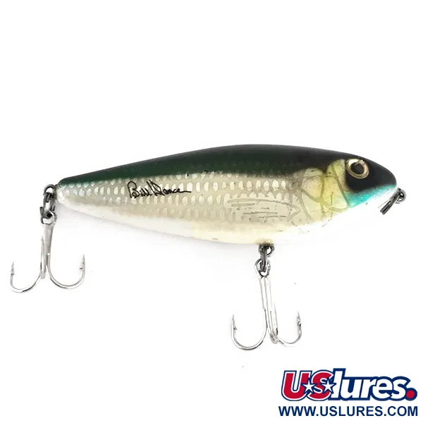 En signatur av "Bill Dance" löper längs den silverskimrande sidan av denna Heddon-klassiker i Excalibur-serien. Med en längd på 7 cm (2 3/4") och en vikt på 10 g (1/3 oz) har betet en realistisk betesfiskprofil med en djupgrön rygg och ett strukturerat silverfärgat nätmönster på sidorna. En mjuk blå accent under hakan kompletterar de gyllene ögonen och den gräddvita buken. Designad som ett ytbete med rasselkammare, kan den nå djup på 0,5 m (1,6 ft) under invevning. Just detta exemplar, med produktkod 8055, är i utmärkt 5/5-skick. Tillverkad i USA och utrustad med två skarpa trekrokar för att säkerställa effektiva krokningar. De interna rasselkammarna ger en specifik akustisk närvaro när betet arbetas över vattenytan.