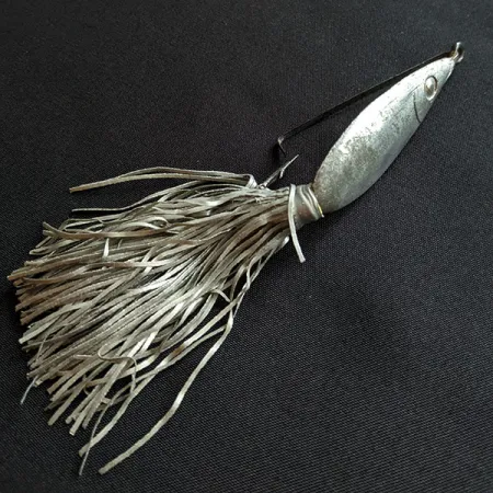 Silverfärgad finish präglar detta vintageexemplar, som har en tydlig "Hawaiian"-stämpel på metallytan. Med en vikt på 16g (3/5oz) är Fred Arbogast Hawaiian #3, med produktkod 20096, ett rejält bete byggt för fiske i tät vegetation. Kroppen mäter 6 cm (2 1/4") och är utrustad med en fast enkelkrok som skyddas av ett robust vasskydd i tråd. En tjock, silverfärgad kjol ger profilen ordentlig volym och är säkert fäst bakom det droppformade metallhuvudet. Betet har sitt ursprung i USA och uppvisar lätta spår av användning, men är i ett välvårdat skick (4/5) där tillverkarens stämpel fortfarande är tydligt läsbar. Ögat utgörs av en enkel präglad cirkel på huvudet, ett kännetecken för Arbogasts design från mitten av seklet. Den robusta konstruktionen speglar varumärkets traditionella fokus på hållbarhet och funktion för sportfiskare.