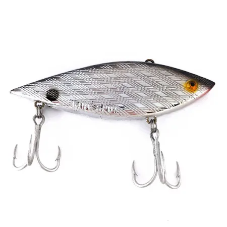 Garcia King Spot väger 21g (3/4oz) och har en iögonfallande silverfinish med ett präglat diamantfjällmönster längs sidorna. Detta vintage lipless sjunkande drag, katalogiserat under produktkod 10394, mäter 9cm (3 1/2") och representerar eran innan Garcia gick samman till Abu Garcia. Namnet är stämplat direkt på sidan av kroppen, som är utformad för fiske på varierande djup. Det är utrustat med två trekrokar och ett toppmonterat linfäste, vilket gör det till ett mångsidigt val för spinnfiske eller trolling efter arter som gädda, gös och abborre. Hårdvaran och metallfinishen är exceptionellt välbevarade, och detta exemplar är klassat i skick 5/5.