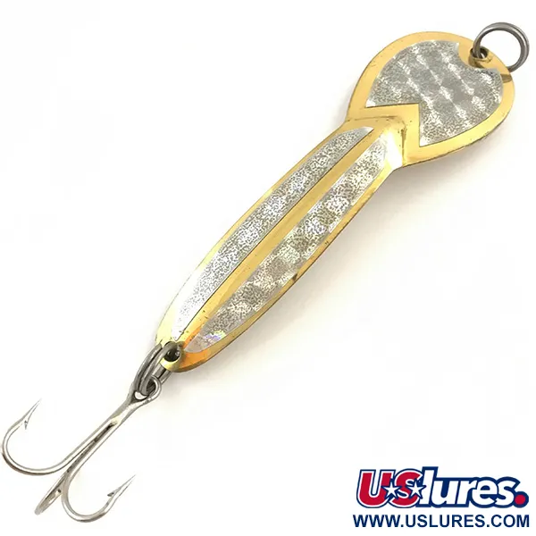 På baksidan finns den tydliga stämpeln ”GLEN L. EVANS LOCO”, som identifierar detta bete som en originalproduktion från tillverkaren i Caldwell, Idaho, innan serien senare köptes upp av Luhr Jensen. Skeddraget mäter 9 cm (3 1/2") och väger 23 g (3/4 oz). Det har en polerad guldkropp med distinkta inlägg av holografisk prismatejp som skapar ett flerfärgat blänk. Detta exemplar, med produktkod 5119, är i toppskick (betyg 5/5). Det har kvar sin originalutrustning, inklusive en vass trekrok och fjäderring. Designat för spinnfiske eller trolling, och används vanligtvis för fiske på djup upp till 0,9 m (3 ft).