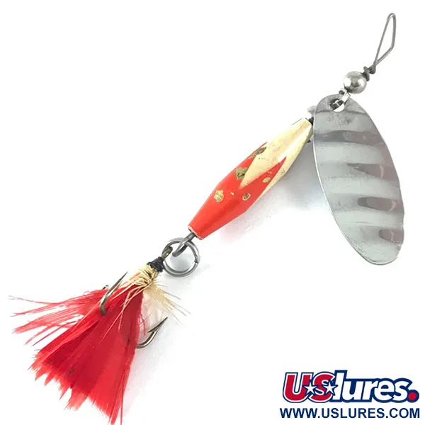 Museiarkiv: Glen Evans Shyster Spinnare, Nickel / Röd / Vit, 7g, Fjäderkrok, #3666