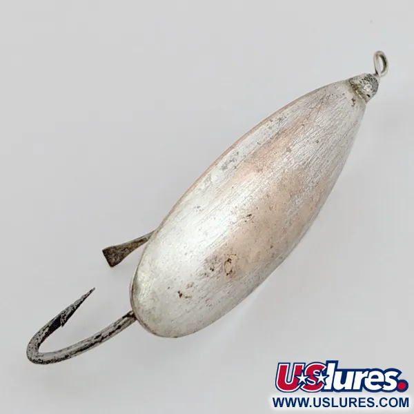 Äkta försilvring ger detta 5,5 cm långa skeddrag en klar, vit lyster som skiljer sig markant från moderna ytbehandlingar i krom eller polerat stål. Kroppen, som är stansad ur en tung koppar-zink-legering, är konstruerad med ett tjockare mittparti för att bibehålla en stabil krokorientering under hemptagningen. En enkel fast krok skyddas av ett robust vasskydd i metalltråd, vilket möjliggör effektiva kast direkt in i tät vegetation och näckrosor. Till skillnad från moderna versioner kommer detta exemplar från den äldre USA-produktionen och bär de klassiska tillverkarstämplarna på insidan. Draget visar lätta tecken på ålder som inte försämrar dess reflekterande egenskaper, skick 4/5. Med en vikt på 9 g hjälper designen till att eliminera linvridning och ger tillräcklig tyngd för exakta kast i trånga gluggar i växtligheten. Denna vintage Johnson Silver Minnow Weedless är katalogiserad under produktkod 24492.