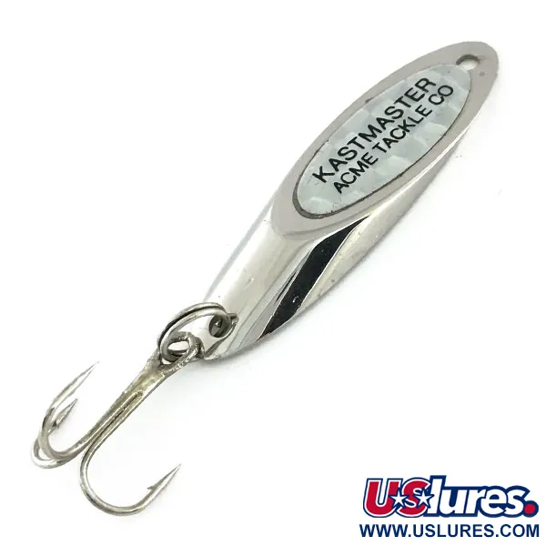 Distinkta regnbågshologram-inlägg är centrerade i den polerade nickelkroppen på detta 5,2 cm (2 tum) långa skeddrag i metall. Försett med den ikoniska 'KASTMASTER ACME TACKLE CO'-stämpeln på prismaytan, bär detta bete produktkod 9449 och speglar den höga tillverkningsstandarden från dess amerikanska ursprung. Med en mångsidig vikt på 10,5 g (3/8 oz) är den solida metallkonstruktionen precisionsbearbetad till en specifik balans som säkerställer stabil gång vid djupt jiggfiske eller hemtagning i hård ström. Nickelpläteringen ger en högreflekterande yta, medan det fjällmönstrade holografiska inlägget tillför ytterligare ett lager av visuellt blänk. Exemplaret är i 5/5-skick med en ren, reflekterande finish och originalkomponenter, inklusive en stark fjäderring och en vass trekrok. Den aerodynamiska profilen är konstruerad för att minimera vindmotstånd vid långdistanskast, en teknisk detalj som gör detta Acme-original till ett pålitligt val för att nå avlägsna stim av rovfisk.
