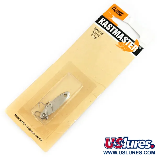 Med en vikt på exakt 3/32oz (2,5g) speglar detta lilla skeddrag det klassiska amerikanska hantverket från märket Acme. Betet mäter 1 1/4" (3cm) och har en Nickel / Green-finish designad för hög synlighet och glitter. Detta exemplar, identifierat med produktkod 9691, är oanvänt i sin ursprungliga vintageförpackning från Hard and Soft Fishing-eran. Konstruktionen består av en specifik massiv mässingslegering som förhindrar böjning och behåller sin lyster även i saltvattenmiljöer. Dess unika aerodynamiska form är konstruerad för långdistanskast, medan bakänden är utrustad med en vass trekrok fäst med en fjäderring. Detta USA-tillverkade bete är balanserat för mångsidiga applikationer, inklusive vertikalt jiggfiske eller fiske i starka strömmar i både sött och salt vatten.
