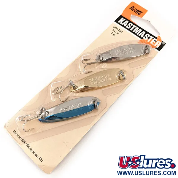 Museiarkiv: Acme Kastmaster Kit 7g Skeddrag, Guld/Nickel/Blå, Mässing, #11327