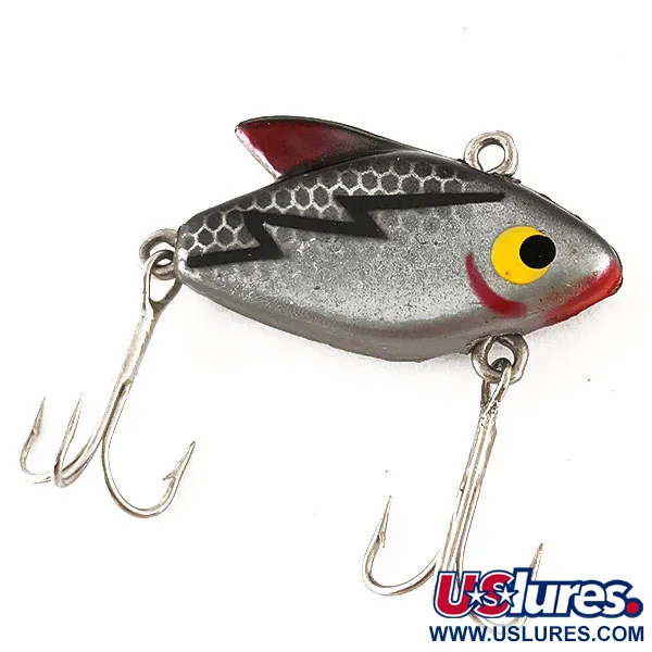 Med en nätt profil på 3/16 oz (5 g) är denna Kresge #41 ett intressant exempel på japantillverkad fiskeutrustning för Kmart. Detta metallbetet mäter 1 1/2" (4 cm) i längd och har en slående silverbas med ett bikakeformat fjällmönster på den övre halvan samt en tydlig svart zigzag-linje längs sidan. Huvudet har ett gult öga och ett rött gälstreck som matchar den röda färgen på den lilla ryggfenan. Denna sjunkande modell med produktkod 12456 är designad för varierande djup, vilket gör den till ett mångsidigt val för spinnfiske eller trolling efter arter som öring, abborre eller gös. Två silverfärgade trekrokar sitter säkert fästa på undersidan. Betet är i 5/5-skick och har en ren och glansig finish på alla ytor, inklusive den toppmonterade linöglan.