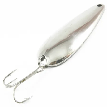 En briljant nickelfinish definierar den klassiska profilen för detta 21 g (3/4 oz) skeddrag, en stapelvara för sportfiskare sedan varumärkets start 1929. Med en längd på 7 cm (2 3/4") har Len Thompson #1 en kraftig kropp designad för hållbarhet mot de vassa tänderna hos gädda. Den konkava baksidan är tydligt stämplad med tillverkarens märkning "LEN THOMPSON NO. 1", vilket bekräftar dess ursprung bland samlare av kanadensiska fiskeredskap. Detta exemplar är i 5/5 skick, med en ljus, reflekterande yta och robust hårdvara. Monterad via en stark fjäderring är trekroken väl lämpad för trolling eller spinnfiske efter insjööring och lax. Känd för en långsam vaggande gång som efterliknar en stabil betesfisk, är denna specifika nickelvariant registrerad under produktkod 3531.