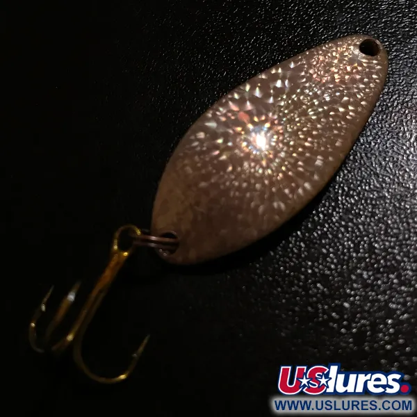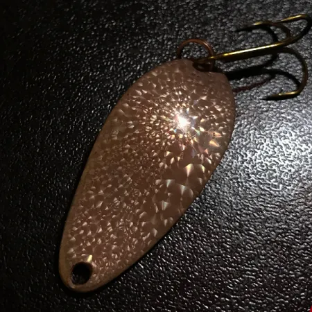Präglad med den ikoniska ”Little Cleo”-märkningen på baksidan, har detta 4 cm (1 1/2") skeddrag den sällsynta Crystal (Golden Scale)-ytan, ett texturerat mönster designat för att fånga och sprida ljus. Med en vikt på 7 g (1/4 oz) representerar detta exemplar hantverket från det ursprungliga Seneca Lure Co. baserat i USA, tillverkat före varumärkets förvärv av Acme i början av 1980-talet. ”Shattered glass”-effekten på framsidan av draget, identifierad med produktkod 8399, förblir anmärkningsvärt klar och reflekterande. Detaljerna består av en robust övre fjäderring och en vass, bronserad trekrok. Just detta drag är i 5/5-skick, med välbevarade ytor och tydlig prägling. Den breda, puckelryggiga formen på skeden är ett signum för Little Cleo-designen, som ofta används för kastfiske och trolling.