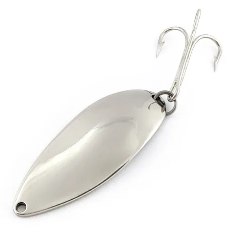 På baksidan av detta 21 g (3/4 oz) skeddrag i polerad krom finns den ikoniska dansarsymbolen instämplad, ett kännetecken för den ursprungliga produktionen från Seneca Lure Company som går under namnet Hula Girl. Med en längd på 6,5 cm (2 1/2 tum) representerar detta exemplar eran innan Acme köpte upp varumärket i början av 1980-talet och sedermera tog bort det karaktäristiska dansarmotivet från verktygen. Många erfarna sportfiskare hävdar att det var just denna grafik som befäste Little Cleos rykte om framgång ute på vattnet. Betet, med produktkod 22881, har en kropp i kraftig metall och en stor trekrok säkrad med en robust fjäderring. Ytan har en högblank finish och skicket på detta exemplar är en solid 5/5. Den djupa gravyren på baksidan visar tydligt namnet Seneca och ursprunget USA, vilket markerar det som ett äkta stycke amerikansk fiskehistoria.