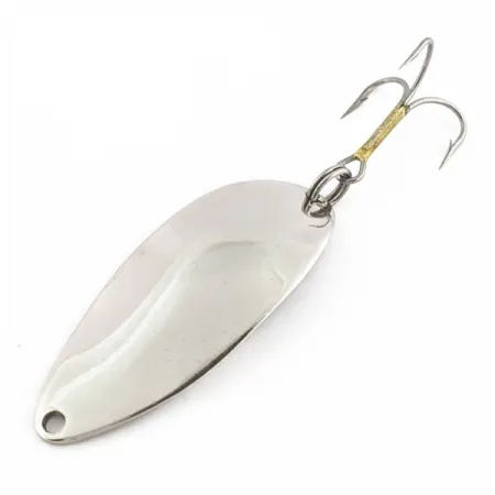 Stansad med den karaktäristiska dansarbilden på baksidan, representerar detta förnicklade skeddrag originaldesignen från Seneca Lure Co.-eran. Med en vikt på 1/2 oz (14 g) är den tunga metallkroppen formad med den karaktäristiska breda profilen avsedd för långa kast. Den blanka nickelfinishen täcker ramen på 2 1/4" (5,5 cm), där märkningarna "LITTLE CLEO" och "SENECA LURE CO." är tydligt synliga på baksidan. Sportfiskare letar ofta efter denna specifika Hula Girl-detalj som fasades ut efter att Acme förvärvade företaget i början av 1980-talet. Detta exemplar, identifierat med produktkod 24590, uppvisar en ren yta med ett skickbetyg på 5/5. Hårdvaran består av en enkel trekrok fäst vid den bakre öglan.
