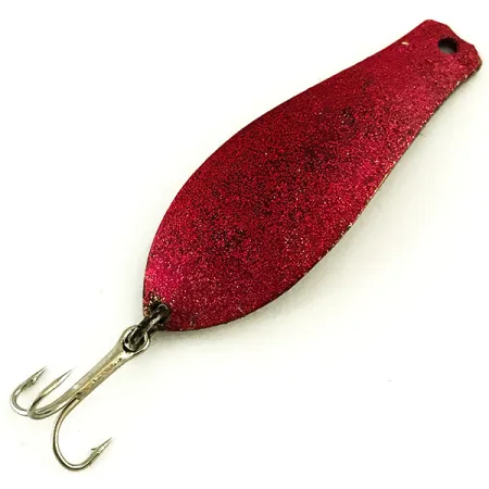 Metallkroppen på 7g (1/4oz) glittrar med en levande tvåtonad textur och uppvisar en slående kontrast mellan sina röd- och guldglittrande sidor. Denna USA-tillverkade Prescott Spinner, med produktkod 5655, är modellen Little Doctor 255 och mäter 4,7 cm (1 3/4"). Skicket på 5/5 återspeglar det utmärkta bevarandet av glitterbeläggningen och integriteten hos originaldelarna. Den enda trekroken är vass och säkert fäst via en extra stark fjäderring. Skeddraget är designat för mångsidighet och dess droppformade profil har ett rent fästhål i toppen för anslutning av lina eller tafs.