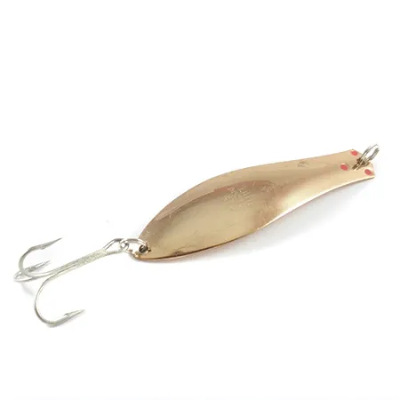 Polerade kopparytor ger detta skeddrag på 21g (3/4oz) en varm, reflekterande lyster som omedelbart fångar blicken. Little Doctor 275, produktkod 2901, framhäver de klassiska amerikanska tillverkningsstandarderna från Prescott Spinner Company. Med en längd på 9cm (3 1/2") är draget byggt med en slank, långsmal profil anpassad för spinnfiske eller trolling på olika djup. Metallkroppen har subtila röda detaljer nära nosen som kontrasterar mot den metalliska finishen. För samlare är skicket 5/5 tydligt i de exceptionellt rena ytorna och den välvårdade silverfärgade trekroken. En robust fjäderring vid fästet kompletterar hårdvaran på detta USA-tillverkade exemplar, som är anmärkningsvärt välbevarat genom hela sin längd på 9cm (3 1/2").