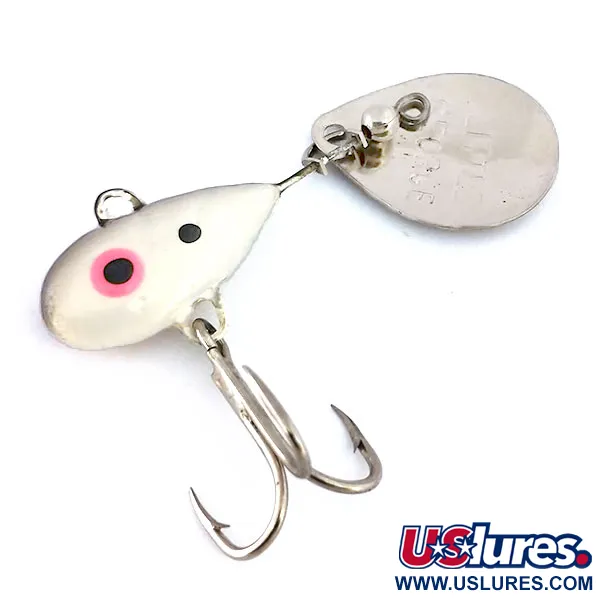 Nickel / Vit finish karaktäriserar blykroppen på denna vintage 14g (1/2oz) tail-spinner. Med en längd på 4cm (1 1/2") är denna Mann's Bait Company Little George (produktkod 10231) ett klassiskt exempel på Tom Manns amerikanska designhistoria. Blykroppen har ett högkontrasterande rosa-inramat öga och en mindre svart fläck, parat med en hamrad Colorado-sked i nickel baktill för maximalt blänk. Skicket på detta exemplar är utmärkt, vilket motiverar betyget 5/5 med sin rena färg och blanka metalldelar. Designad för djupt vatten som vertikalfiske eller långdistanskastning, där den tunga blykonstruktionen säkerställer en snabb sjunkhastighet. Betet är utrustat med en bukhängd trekrok och en toppmonterad länkögla för att bibehålla stabiliteten under invevning.