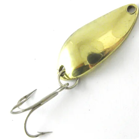 Detta kompakta skeddrag glänser i en klar guldfinish och väger 3/16 oz (5g). Little Jewel från Luhr Jensen mäter exakt 1 1/4" (3,3cm) och är en vintagemodell som har varit ur produktion i många år. Just detta exemplar, med produktkod 4179, är i 5/5 skick och har en högblank yta som reflekterar ljus över hela sin profil. Betet är tillverkat i USA och har en klassisk droppform med en vass trekrok monterad i en fjäderring. Designen inkluderar ett förborrat hål i den smala änden för direkt lina eller lekare. Guldförgyllningen är jämnt applicerad över den stansade metallkroppen, vilket visar på kvaliteten i Luhr Jensens tidiga tillverkningsstandarder.