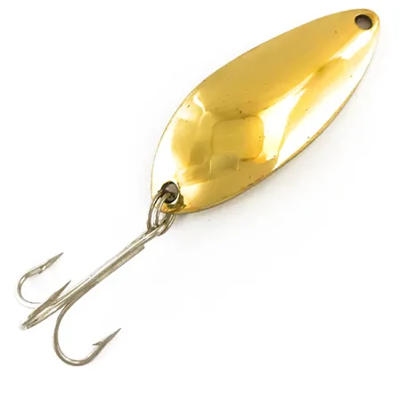 Polerad till en klar guldglans, reflekterar den konvexa ytan på detta skeddrag ljuset på ett sätt som påminner om det klassiska metallarbete som Luhr Jensen var känd för. Detta 5,5 cm (2 1/4") långa kastbete har produktkod 4717 och väger enligt katalogen 14 g (1/2 oz). Den konkava insidan är djupt präglad med varumärket "LITTLE JEWEL", det signifikanta juvelemblemet och Luhr Jensen USA-ursprungsmärket. Trots att metallstämpeln anger 2/5 oz, listar de tekniska specifikationerna denna specifika version som 1/2 oz (14 g). Den levereras riggad med en vass silverfärgad trekrok och fjäderringar. Som en vintagemodell som har varit ur produktion i många år erbjuder den en direkt länk till varumärkets arv. Exemplaret är i utmärkt skick, med betyget 5/5.