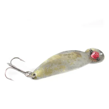Med stämpeln "LUCKY STRIKE CANADA" tydligt på baksidan visar detta vintage skeddrag i metall upp det klassiska hantverket från en legendarisk nordamerikansk tillverkare. En facetterad röd glaspärla är säkert fastsurrad i betets huvud och ger en visuell fokuspunkt med hög kontrast. Med måtten 7 cm och en vikt på 12 g har kroppen en försilvrad / förgylld finish där den tvåtonade metallen är synlig över den kurvade profilen. Droppformen övergår i en cirkulär övre sektion som hyser linögat och den röda signaturpärlan. Identifierat med produktkod 1527, har exemplaret ett skick på 4/5 och visar ärliga tecken på ålder samtidigt som det behåller sin fulla funktionella integritet. Utrustningen inkluderar en robust trekrok fäst via en fjäderring i stjärten, redo för kastfiske eller trolling.