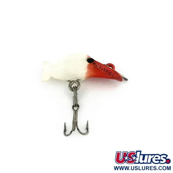 Ett klassiskt färgschema med rött huvud och vit kropp ger denna Luhr Jensen Hot Shot 70 en slående visuell kontrast som sticker ut i varje vintage-samling. Med en vikt på 1,6 g (1/16 oz) och ett kompakt mått på 2,5 cm (1") är detta bete ett utmärkt exempel på finesse-design för fiske i grundare strömmar. Detta specifika exemplar, identifierat med produktkod 9538, har den ikoniska "Hot-Shot"-märkningen tydligt stämplad på den karaktäristiska röda dykskeden. Konstruerad för att nå ett djup på 0,9 m (3 ft), använder den en enkel buktrekrok monterad med ett lekande för att säkerställa krokning vid trolling eller spinnfiske. Denna USA-tillverkade modell håller en mycket hög kvalitet, med skicket rankat 5/5, vilket visar upp en ren och levande finish på plastkroppen.