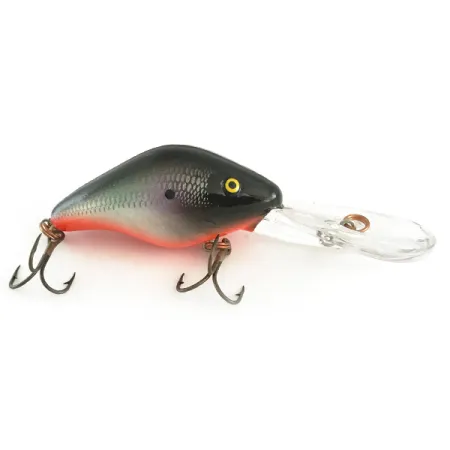 Fjällmönstret på sidorna av denna Mann's 30+ Depth Plus skapar en subtil textur som fångar ljuset mot den svarta och orangeröda finishen. Denna specialiserade djupgående wobbler med produktkod 6636 har en massiv klar sked designad för att nå djup upp till 5 m (16,4 fot), oavsett om du kastar eller trollar. Kroppen mäter kompakta 5,5 cm (2 1/4") och väger 14 g (1/2 oz), vilket ger tillräcklig massa för att nå djupa strukturer. Färgsättningen är ett mönster med hög kontrast, med en djupsvart rygg som övergår i silverfärgade fjällsidor med en framträdande lateral punkt, och avslutas med en lysande orangeröd buk. Utrustad med gula ögon håller betet ett imponerande skick på 5/5, där både hårdvara och lack är i utmärkt form. Linfästet är placerat direkt på skedens förstärkta mitt för att hantera trycket vid invevning på djupt vatten. Båda trekrokarna är vassa och säkrade med robusta fjäderringar.