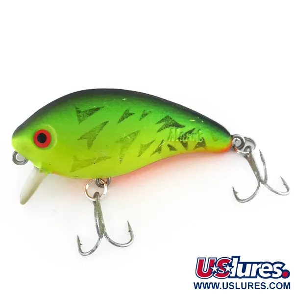 Djupa svarta triangelmönster kontrasterar mot den livfulla chartreuse-färgen på detta USA-tillverkade exemplar, ett signum för Mann’s klassiska estetik. Med en vikt på 11 g (2/5 oz) är denna 6 cm (2 1/4") Mann's Mid 1- Minus (Produktkod 7951) ett specialverktyg för fiskesituationer där du behöver svepa precis ovanför sjögräset. Den är konstruerad för att gå högt i vattenpelaren och når djup på endast 0–30 cm. Den lysande orangea buken fungerar som en huggpunkt för gädda eller gös, medan den korta, genomskinliga skeden är utformad specifikt för grunt spinnfiske och trolling. Wobblern visar precis tillräckligt med karaktär för att bekräfta sin vintagestatus och är i 4/5 skick, med bibehållen lyster och tydlig fabriksstämpel. Mann's Bait Company tillverkade dessa som pålitliga alternativ för grunt vatten och fiske i tät vegetation.