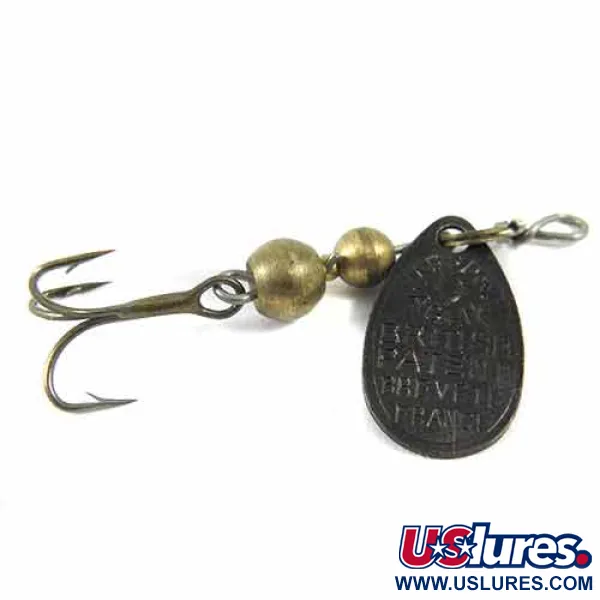 Med en vikt på endast 2,2 g (1/16 oz) representerar denna ultralätta spinnare grunden i Mepps arv. Skeden med mörk finish är tydligt stämplad med "BRITISH PATENT" och "CHEVETTE FRANCE", vilket understryker komponenternas europeiska ursprung före montering i USA. Betet är 4 cm (1 1/2") långt och kroppen består av två solida mässingspärlor som ger den nödvändiga vikten för kast med lätta linor. Detta specifika exemplar, med produktkod 1355, är i 4/5-skick och har ett välvårdat utseende på både den svarta skeden och tråden. Aglias design använder ett exakt konrotationssystem som gör att skeden kan rotera fritt mot mässingspärlorna. En vass trekrok med bronsfinish kompletterar konstruktionen, avsedd för lätta hugg från öring, crappie eller abborre.