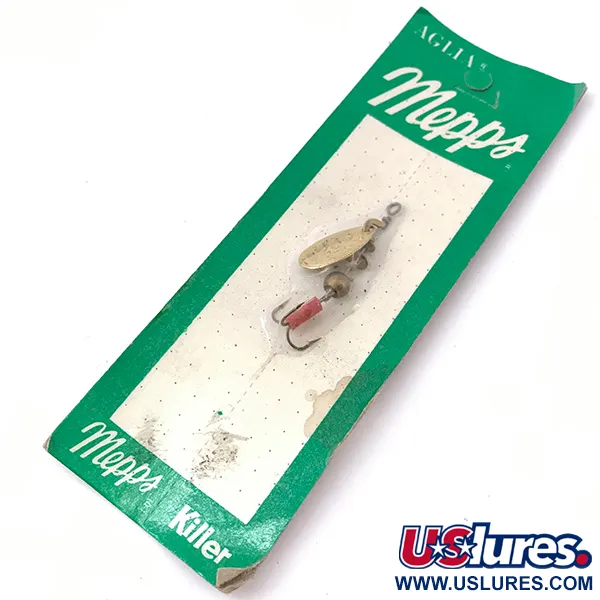 Guldpläteringen på skeden i storlek 0 ger det klassiska blänket som har definierat Mepps i decennier. Detta exemplar, katalogiserat under produktkod 3927, har den ikoniska röda slangen på trekroken – en signaturdetalj på dessa vintage-spinnare i serien "Killer". Med en vikt på 2,5 g (3/32 oz) och en längd på 4,5 cm (1 3/4") är detta bete ett precisionsverktyg för sportfiskare som fiskar med lätt utrustning efter öring eller abborre. Den gröna och vita originalförpackningen är unik med Sheldons' Inc.-logotypen från Antigo, Wisconsin. På baksidan finns kupongen till Fisherman’s Guide kvar, vilket ger en inblick i hur märket marknadsfördes under mitten av 1900-talet. Betet är oanvänt och i utmärkt skick med betyg 6. Komponenterna i mässing och tråden är raka och rena, vilket bibehåller de exakta toleranserna som krävs för Aglias karakteristiska rotationsfysik.