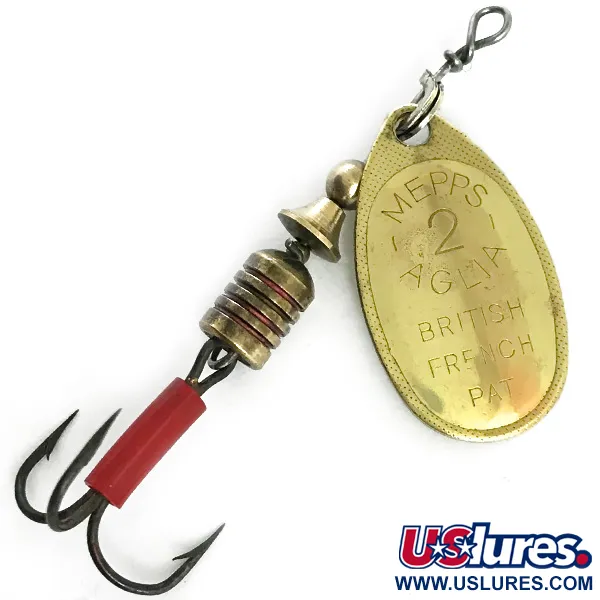 Museiarkiv: Mepps Aglia 2 Spinnare, Guld, 4,5g, Mässingskropp, #5899