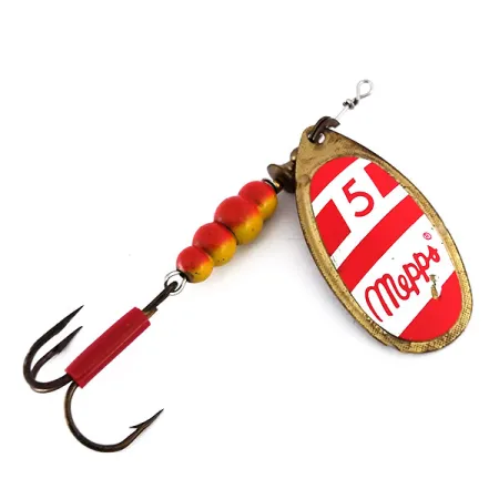 Museiarkiv: Mepps Aglia 5 Spinnare, Röd / Vit / Mässing, 14g, #10136