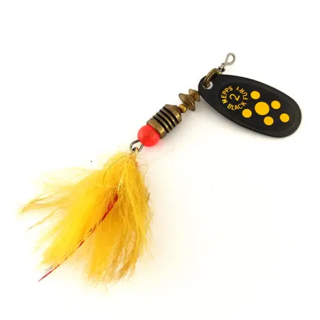 Museiarkiv: Mepps Black Fury 2 Dressed Spinnare, Svart/Gul, 4.7g, Fjäder, #9594