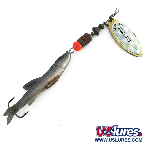 Med en vikt på 7 g (1/4 oz) framhäver denna klassiska inline-spinnare det historiska samarbetet mellan franska komponenter och amerikansk montering. Det silverfärgade bladet har ett texturerat holografiskt klistermärke designat för att reflektera ljus, tydligt stämplat med namnet Mepps. Med en längd på 9 cm (3 1/2") kombinerar monteringen ett traditionellt spinnarblad med en realistisk kropp av mjukplast. En livlig röd pärla ger en fokuspunkt nära framsidan av betesfiskens profil, följt av en serie räfflade svarta distanser. Den mjuka jiggen är riggad med en trekrok vid stjärten och en intern krok för att bibehålla formen. Med produktkod 8483 är detta exemplar i utmärkt skick, betygsatt 5/5, vilket visar den mjuka kroppens integritet och hårdvarans glans. Bladets baksida avslöjar kvaliteten på de fransk-tillverkade komponenterna, ett kännetecken för varumärkets produktion under denna era.