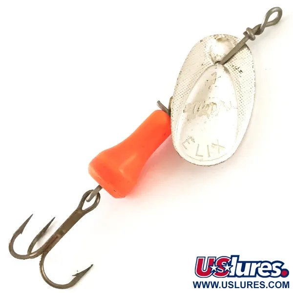 Tillverkad i Frankrike, bär det försilvrade skedbladet på detta exemplar den distinkta 'ELIX'-präglingen som identifierar den som en sällsynt, utgången skatt för den kräsne samlaren. Med en vikt på 4 g är spinnaren uppbyggd kring en klarorange klockformad kropp som ger en djärv kontrast till bladets reflekterande silverfinish. Baksidan av skedbladet har stämpeln 'MADE IN FRANCE', vilket vittnar om dess europeiska ursprung. Med en total längd på 5,5 cm förblir trådaxeln rak och säker, ledande till en robust trekrok. Denna Mepps Elix 1, kategoriserad under produktkod 4778, är i 5/5 skick och uppvisar anmärkningsvärt rena ytor och klar färgsättning. Samlare kommer att uppskatta den skarpa präglingen på bladet, ett kännetecken för dessa tidiga franskförtillverkade spinnare som inte längre produceras.