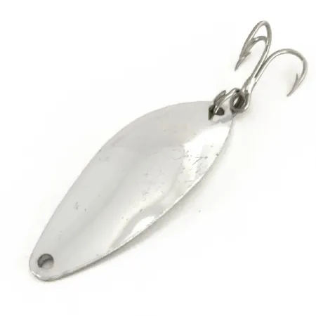 Med en vikt på 1/4 oz (7 g) exemplifierar det droppformade skedbladet på detta japansktillverkade skeddrag den enkla och effektiva design som Mister Twister föredrog under sin era av hårdvaruproduktion. Den polerade silverfinishen sträcker sig över hela längden på 1 1/2 tum (4 cm), vilket ger en högkontrastblixt i vattnet. På den konvexa sidan visar stämplingen tydligt namnet "Mister Twister Shelby Sportfisher" tillsammans med dess ursprung "Japan", en detalj samlare letar efter för att verifiera föremålets arv. Detta specifika exemplar, med produktkod 7444, är i utmärkt skick och får betyget 5/5 för sina rena ytor och välbevarade komponenter. En silverfärgad trekrok är säkert fäst vid stjärten via en robust fjäderring, medan nosen har ett förborrat fästhål. Viktfördelningen är balanserad mot den bredare änden av metallbladet, speciellt utformad för distanskast eller vertikalfiske.
