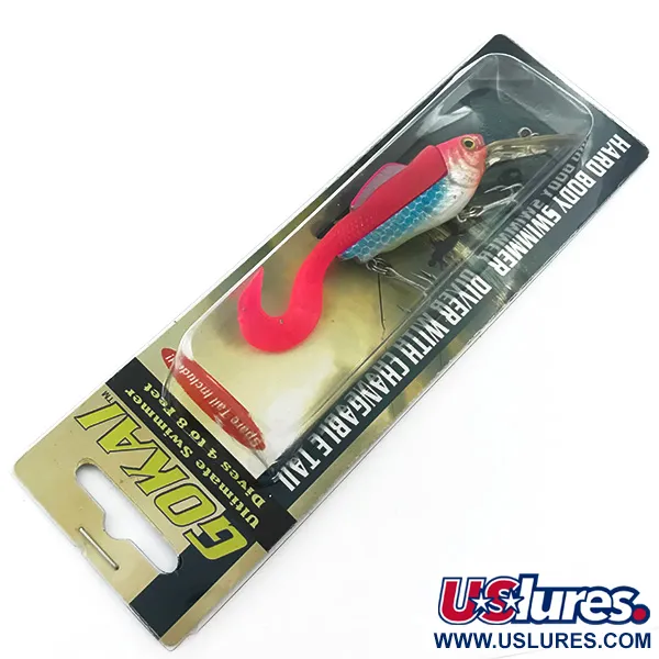 Med sin livfulla fluorescerande röda och blå finish är detta bete ett klassiskt exempel på betesdesign från den amerikanska östkusten, tillverkat av Montauk Mike's Lure Co. i Red Bank, New Jersey. Just denna Montauk Mike's Gokai, med produktkod 5552, är en hybridkonstruktion som kombinerar en hård kropp med en mjuk, utbytbar silikonstjärt. Betet väger 1/2oz (14g) och är 2" (5cm) långt, konstruerat för mångsidighet och specifikt framtaget för att fiska på djup mellan 1,2-2,5m (4-8 fot). Färgsättningen är slående med fluorescerande rött huvud och stjärt, samt en blåfjällig mittsektion som övergår i en ljus buk. Samlare noterar att materialet är UV-aktivt, vilket ökar synligheten i djupt eller grumligt vatten. I originalförpackningen syns en reservstjärt placerad under den genomskinliga dykskeden. Detta exemplar är oanvänt i sin originalförpackning, med tillverkarens kontaktuppgifter och adressen i New Jersey tydligt tryckt på baksidan. Betet är utrustat med en bukkrok (trekantkrok) placerad för att balansera övergången mellan den hårda kroppen och den mjuka stjärten.