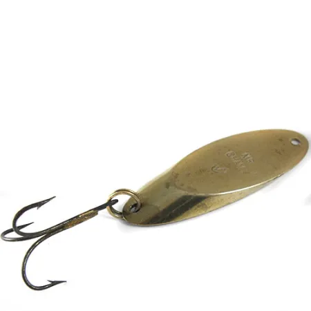 Med en rejäl vikt på 35 g (1 1/4 oz) visar detta vintage skeddrag i metall upp den solida mässingskonstruktionen som definierade Webers tidiga produktion i USA. Betet är 6,5 cm (2 1/2") långt och har en droppformad profil som är tydligt stämplad med namnet Mr Champ och varumärkets distinkta logotyp. Just detta exemplar, identifierat med produktkod 0648, har ett skickbetyg på 3/5 och uppvisar en mörknad yta som samlare ofta uppskattar som ett tecken på autenticitet och ålder. Komponenterna är förankrade med en kraftig fjäderring baktill som håller en stor trekrok utformad för större rovfiskar. Weber, en amerikansk tillverkare med över hundra års historia, såg så småningom denna framgångsrika design övergå till Luhr Jensens sortiment. Det tjocka godset och det enkla fästet i den avsmalnande nosen betonar dess bruksdesign, främst avsedd för långdistanskast eller vertikalfiske på djupt vatten.