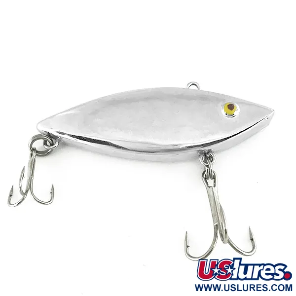 Spegelfinisher som den på denna 6,5 cm (2 1/2") kropp designades för att ge maximalt blänk även i grumligt vatten. Denna Producers Zero Tyrone Boomer Wells, produktkod 7187, är ett sjunkande, ljudalstrande bete speciellt framtaget för arter som abborre och gös. Med en vikt på 8,5 g (1/3 oz) möjliggör den kompakta USA-tillverkade profilen effektiva kast och når djupare zoner. Betet är utrustat med två trekrokar monterade med fjäderringar, och den toppmonterade linöglan indikerar en lipless design avsedd för sjunkande presentationer. Den högreflekterande Mirror-ytan pryds av ett klassiskt gult öga med mörk pupill för bibehållen synlighet. Detta exemplar är i 5/5 skick och är oanvänt, med en kromliknande exteriör och komponenter helt utan tecken på slitage.