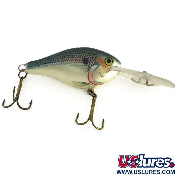 Med en vikt på 10g är denna kompakta djupvobbler konstruerad för att nå djup mellan 2,5 och 3 meter. Rapala Risto Rap 5, produktkod 9281, har den klassiska SD-finishen (Shad) med detaljerade fjäll längs ryggen och mjuka pärlemortoner på magen. Med en längd på 5 cm är detta bete ett mångsidigt val för både spinnfiske och trolling efter gädda eller gös. Detta exemplar är i skick 4/5 och uppvisar en del mindre ytrepor där trekrokarna har vilat mot sidorna. En framträdande genomskinlig sked kombineras med en fjäderring för direkt knytning, medan de distinkta gula ögonen och röda detaljerna vid gälarna ger naturliga visuella huggpunkter. Den bronserade hårdvaran är fortfarande robust och speglar den pålitliga kvaliteten från denna era.