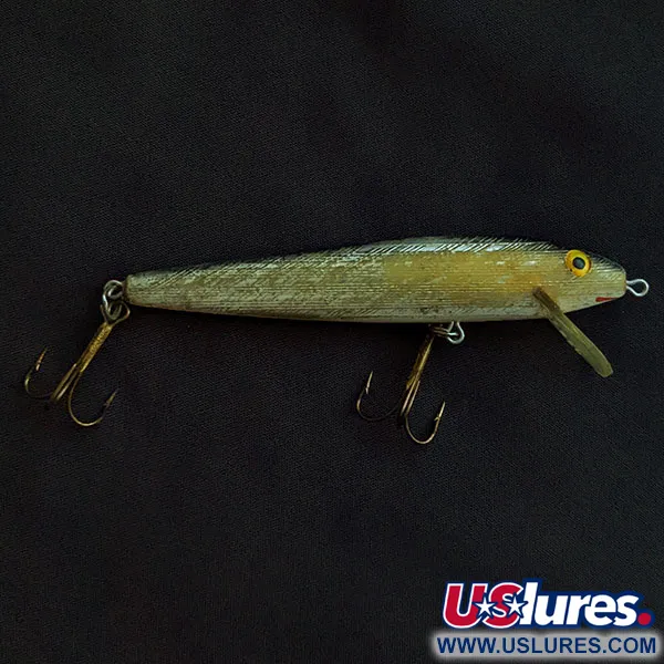 Med en vikt på 1/4 oz (6,5 g) representerar denna vintage-vobbler den klassiska plastkonstruktion som gjorde Rebel till ett välkänt namn i USA. Den 9 cm (3 1/2") långa kroppen är i färgen Silver och har en detaljerad, korsmönstrad fjällstruktur längs sidorna som tonar in i en mörkare rygg. På huvudet finns de karakteristiska gula ögonen med svarta pupiller, vilket är typiskt för dessa tidiga produktionsserier. Den genomskinliga hakskeden i plast är tydligt stämplad med varumärket och är utformad för att ta betet ner till djup mellan 0,9 och 1,8 meter (3–6 fot). Detta specifika exemplar, med produktkod 20932, är utrustat med två robusta trekrokar monterade med fjäderringar i metall. Det lämpar sig väl för både spinnfiske och trolling, särskilt vid jämn invevning eller en stop-and-go-teknik. Med tanke på dess historik är betet i skick 4/5, med lätta ålderstecken som framhäver dess vintagekaraktär.