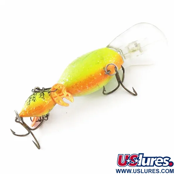 Färgen Fire Tiger med guldglitter täcker den stegade kroppen på denna Renosky Lures Guido's Double Image. Med en vikt på 9,5 g (1/3 oz) och en längd på 6 cm (2 1/4"), konstruerades den ovanliga formen av Gabriel "Guido" Renosky för att efterlikna silhuetten av två betesfiskar som simmar tillsammans. Den genomskinliga skeden på denna flytande modell når djup mellan 0,3–1,6 m vid kast, och kan nå 2,1 m vid trolling. Små orangea plasttrailers fästa vid bukkroken ger extra kontrast mot den lysande chartreusefärgade magen. Interna rasselkulor ger ett ljudligt element till presentationen, vilket är effektivt vid jämn hemtagning eller stop-and-go. Detta exemplar i skick 5/5 behåller sin ursprungliga lyster och unika profil, katalogiserat under produktkod 24467.