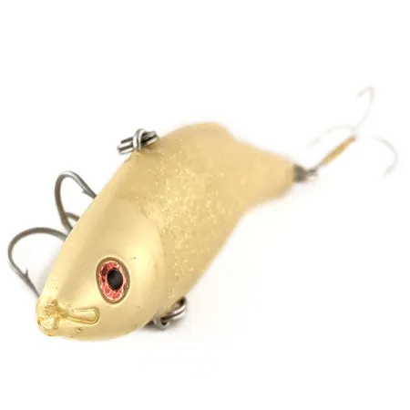 En profil på 1/2 oz (14 g) ger detta japansktillverkade bete den tyngd som krävs för att nå djupt ner i vattenpelaren vid utkast. Saurus Vibra-Zarus, identifierad med produktkod 12433, har en finish i subtil Yellow Glitter som skapar ett mjukt, texturerat utseende snarare än ett skarpt glitter. Kroppen mäter 8,5 cm (3 1/4") och följer den klassiska JDM-stilen för vibrationsbeten, med en slank, komprimerad form och ett framträdande rödmarkerat öga. Hårdvaran består av två trekrokar säkrade med hållbara fjäderringar. Detta exemplar är betygsatt till 5/5 och visar en ren yta där de fina guldflingorna är jämnt fördelade från nos till stjärt. Den blekgyllene basfärgen övergår smidigt över den välvda ryggen, vilket ger en naturalistisk imitation av en betesfisk som är vanlig i Saurus sortiment.