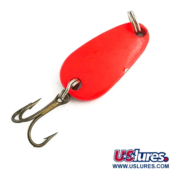 En livlig fluorescerande beläggning täcker den 2,5 cm (1") långa kroppen på detta Sølvkroken-bete, vilket gör det till ett utmärkt val för svaga ljusförhållanden. Skeddraget väger exakt 4 g (1/8 oz) och har färgsättningen "Red UV / Silver" som reagerar intensivt på ultraviolett ljus, vilket förvandlar det synliga röda till ett lysande sken. Denna modell, listad under produktkod 6264, håller skicket 5/5 med en ren och felfri yta. Den bronserade trekroken är säkert monterad med en extra kraftig fjäderring, helt i linje med den kvalitet man förväntar sig av norsk tackeltillverkning. Eftersom de UV-reaktiva egenskaperna är inbyggda direkt i pigmentet bibehåller draget sin synlighet även i grumligt vatten.