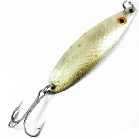 En vikt på 10g ger detta norsktillverkade skeddrag den densitet som krävs för att effektivt nå önskat djup. Sølvkroken Storlaksen mäter 7,5cm och har en blank guldfärgad yta i absolut toppskick (5/5). Dragets framsida är präglad med ett realistiskt fjällmönster och ett tydligt orange öga med svart pupill, medan baksidan har en slät, högpolerad yta. Betet har produktkod 3355 och är utrustat med en stark trekrok och kraftiga fjäderringar. Den långsmala profilen är ett signum för skandinavisk design, skräddarsydd specifikt för fiske i de starka strömmarna i laxälvar.
