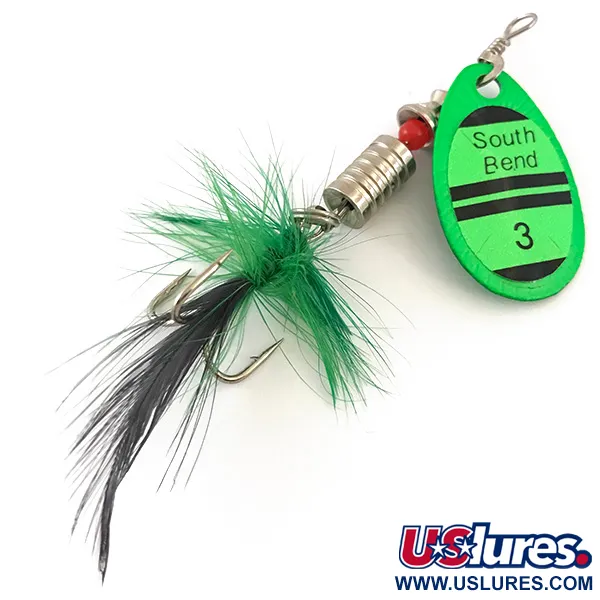 Museiarkiv: South Bend 3 UV Spinnare, UV-Grön, 7g, Fjäderklädd Trekrok, #4186